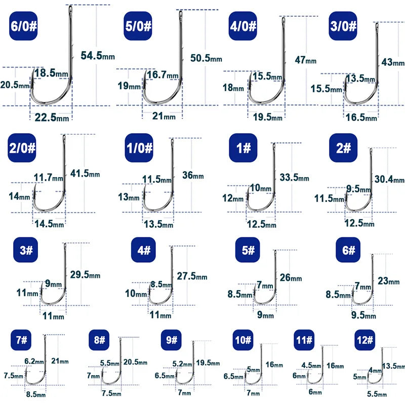 Su diseño con farpas asegura una sujeción firme del cebo vivo o artificial. Disponibles en diversos tamaños, são ideais para pescadores exigentes.