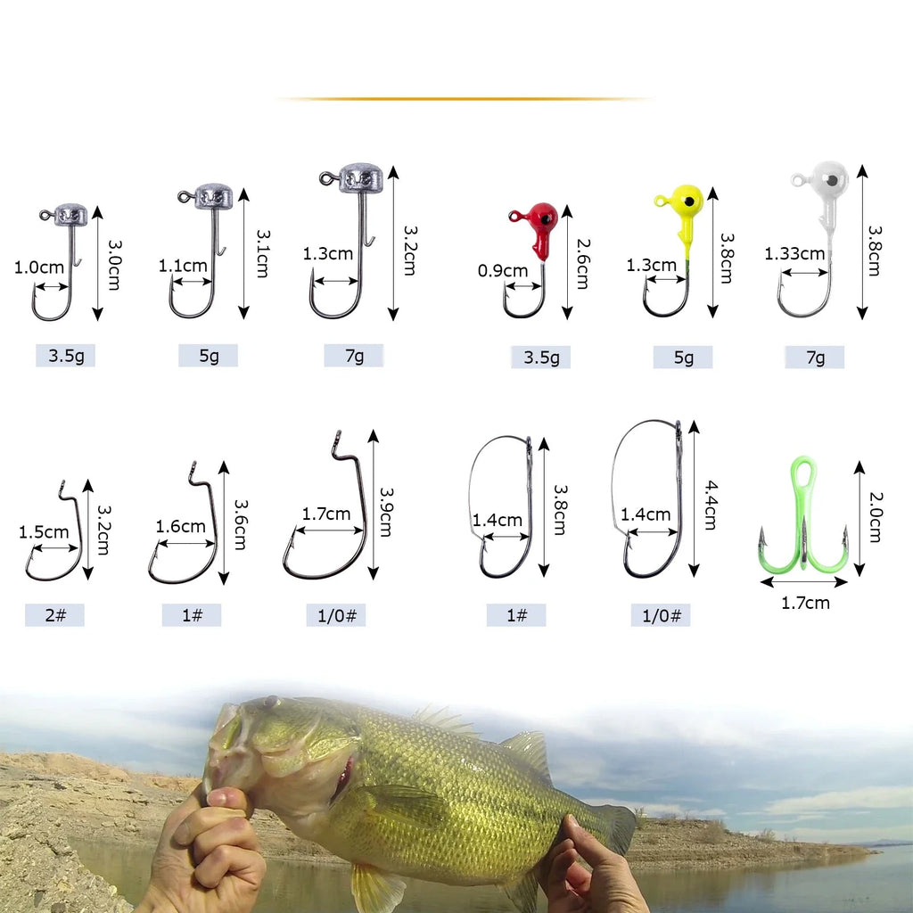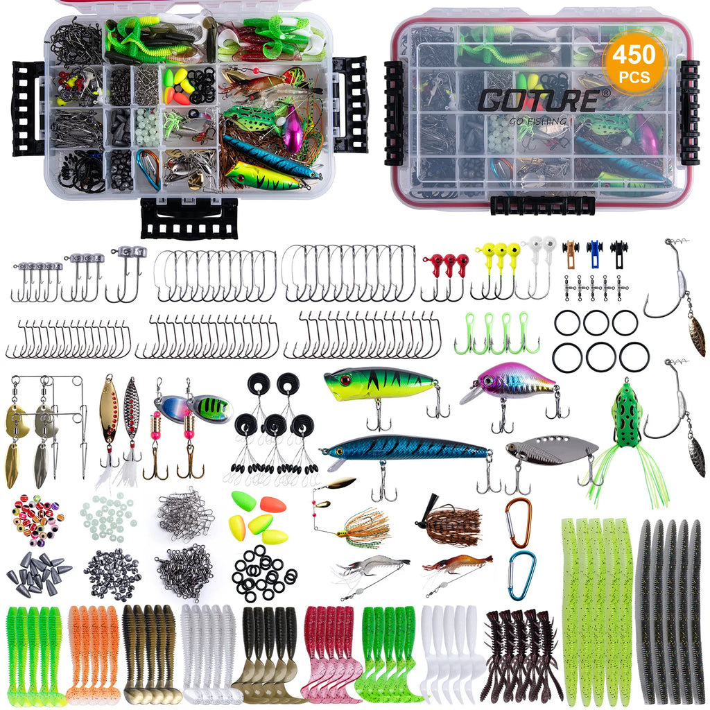 Kit Goture 450 piezas con anzuelos, señuelos blandos y duros, caja completa