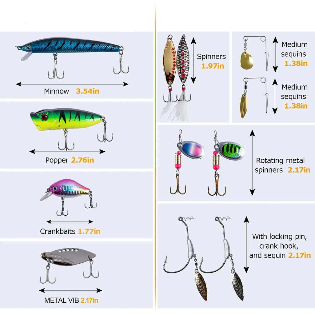 Una solución completa para principiantes o pescadores experimentados, todo en una caja compacta para fácil transporte.