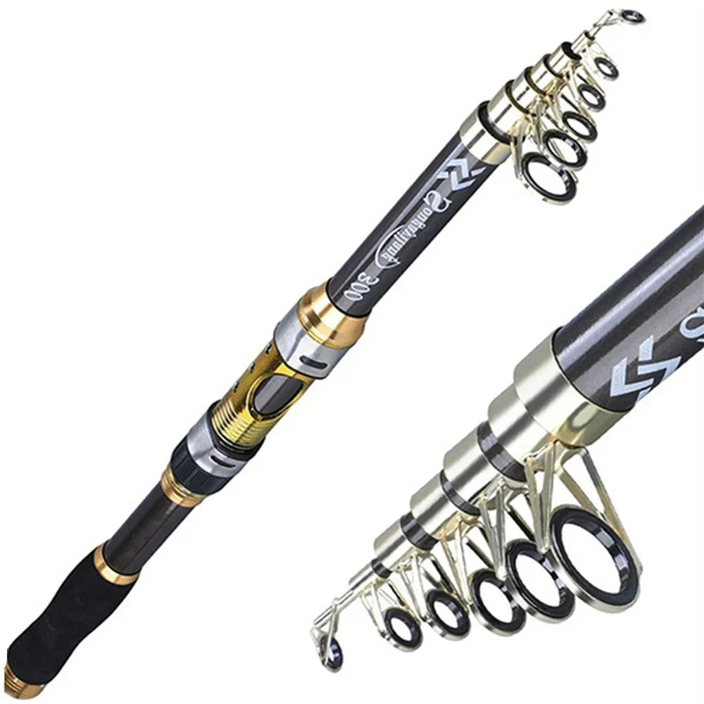 La caña Sougayilang es perfecta para pescadores que buscan practicidad sin sacrificar calidad. Fabricada con 99% de fibra de carbono, es ligera, fuerte y resistente a la corrosión.