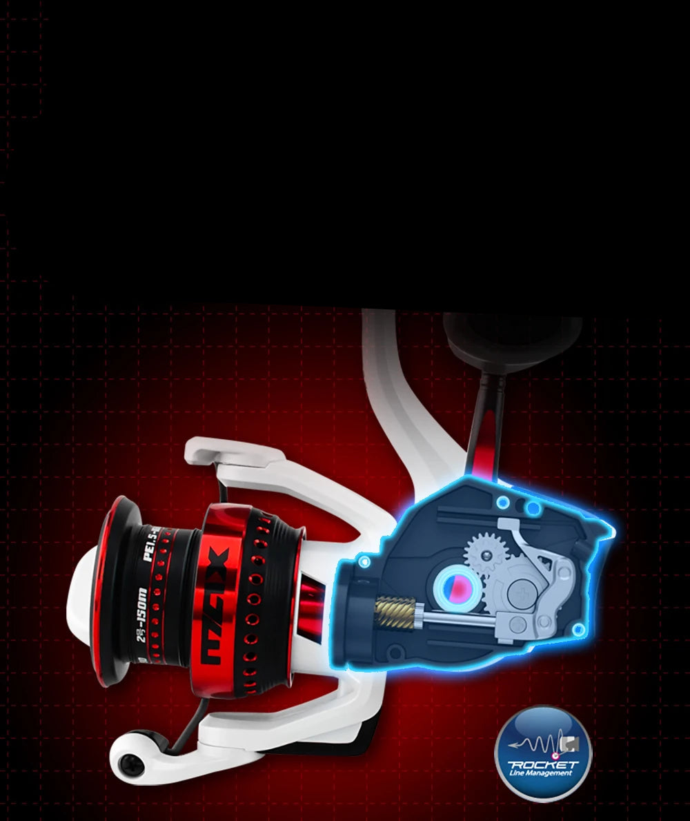 Con sistema de manejo de línea Rocket y relación de engranaje 6.2:1, este carrete spinning proporciona lanzamientos más largos y precisos.