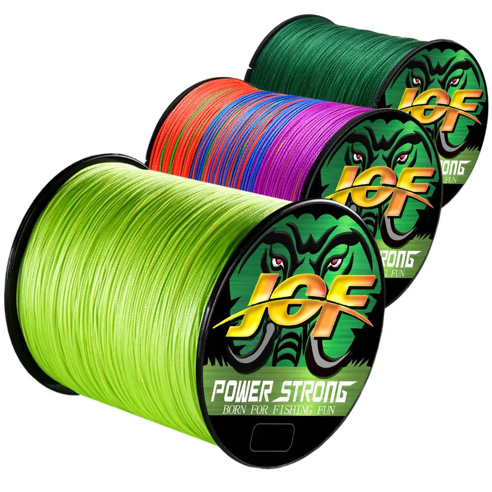 Línea trenzada JOF fabricada con material PE japonés, ideal para agua dulce y salada.