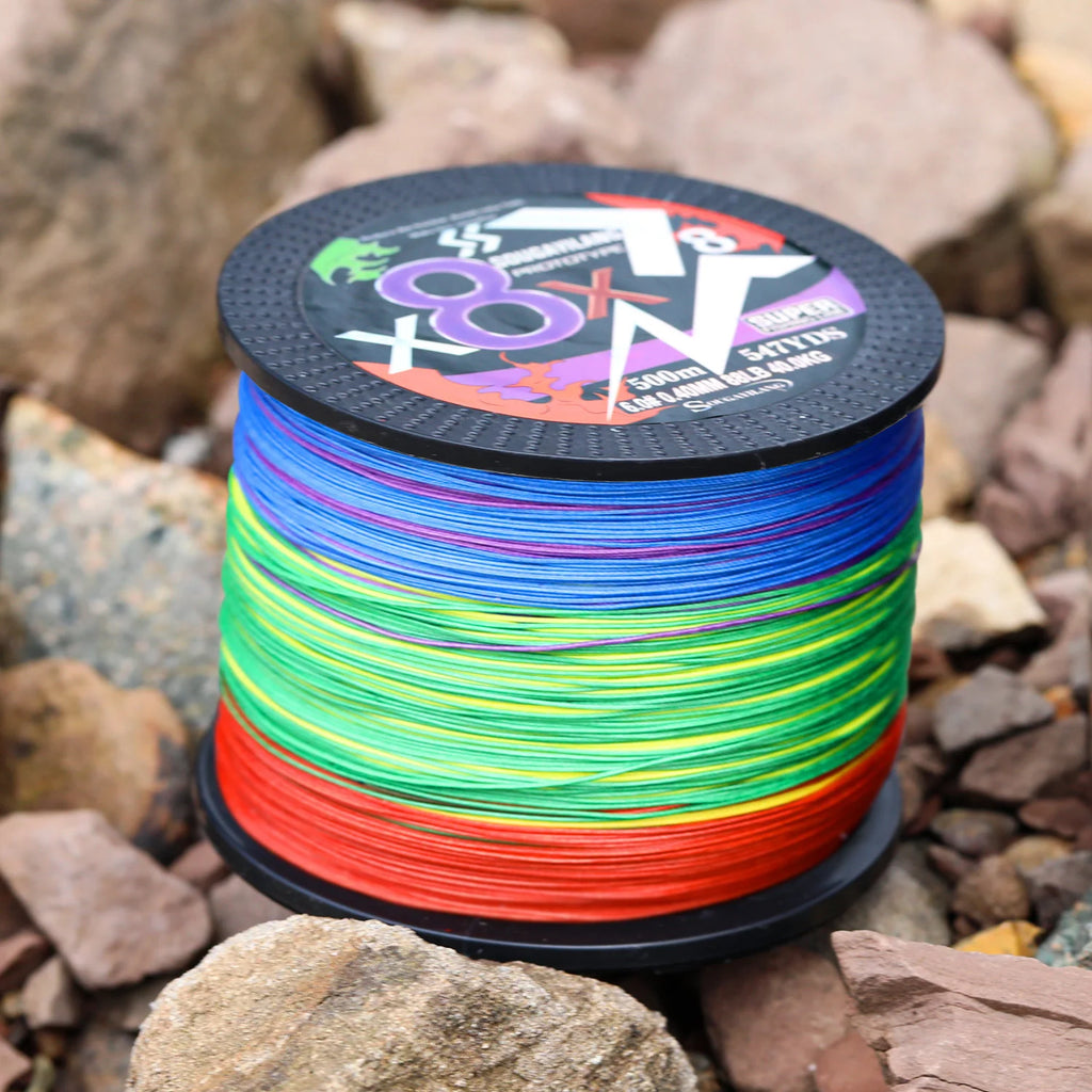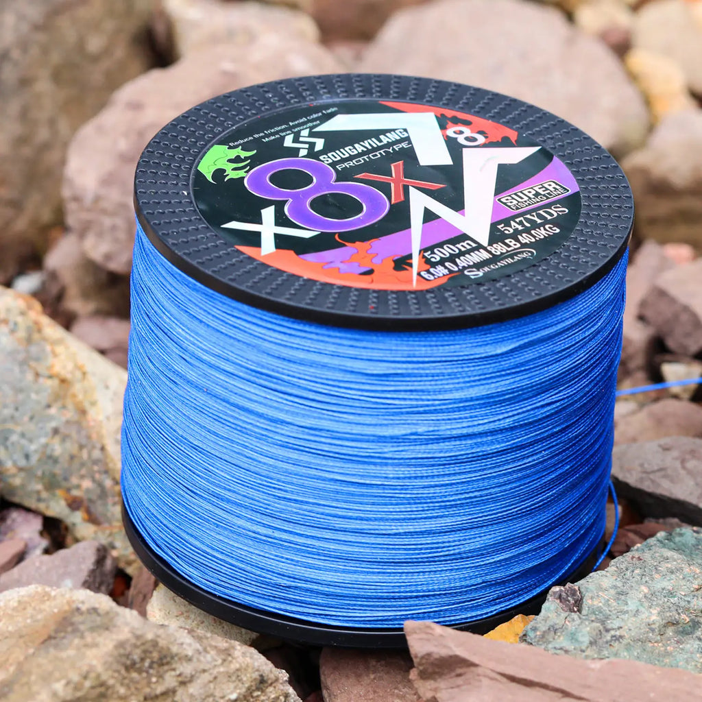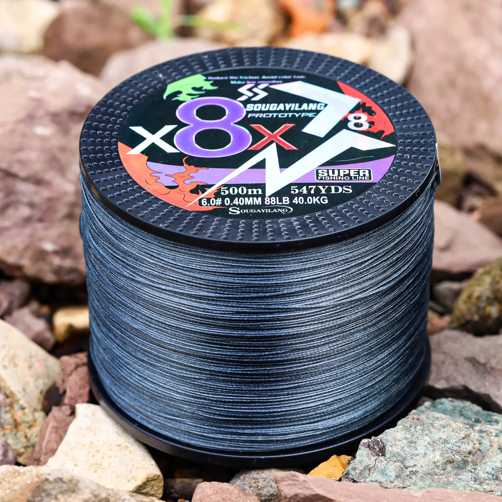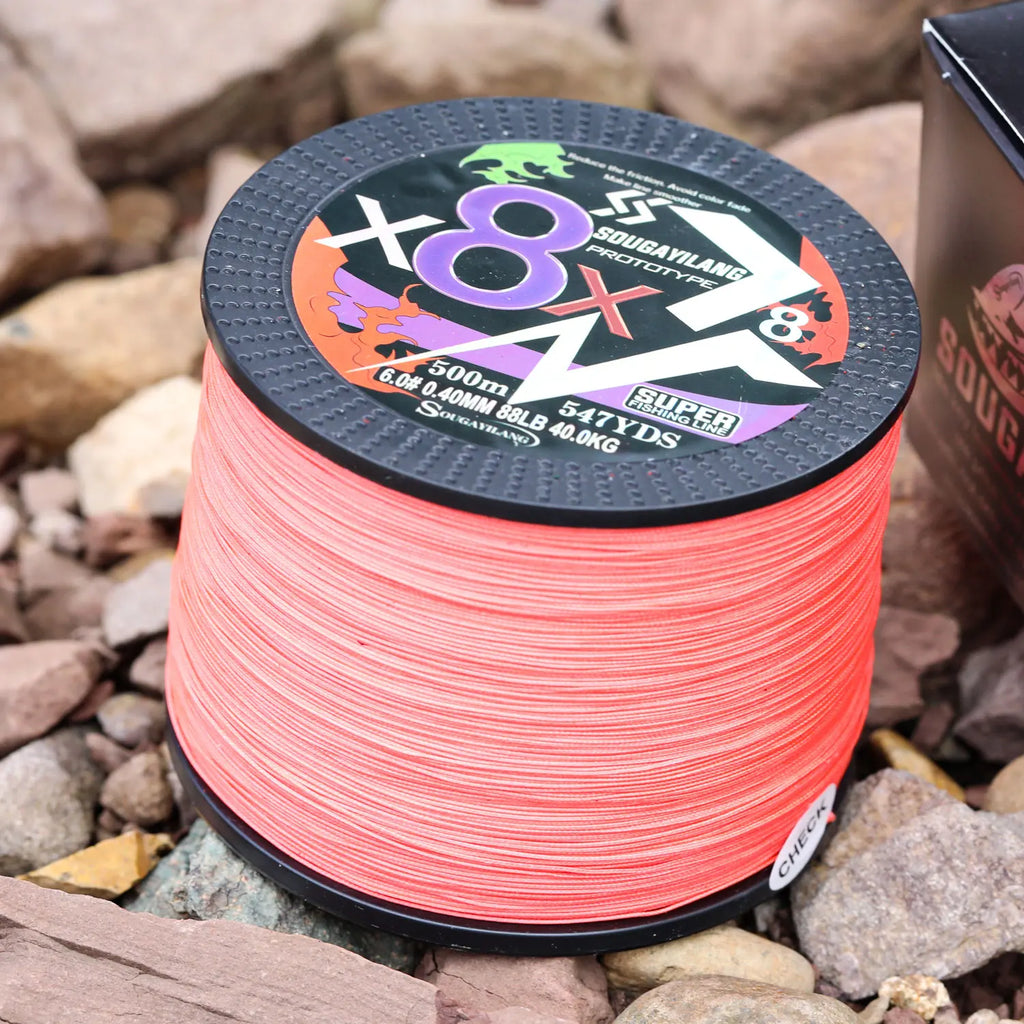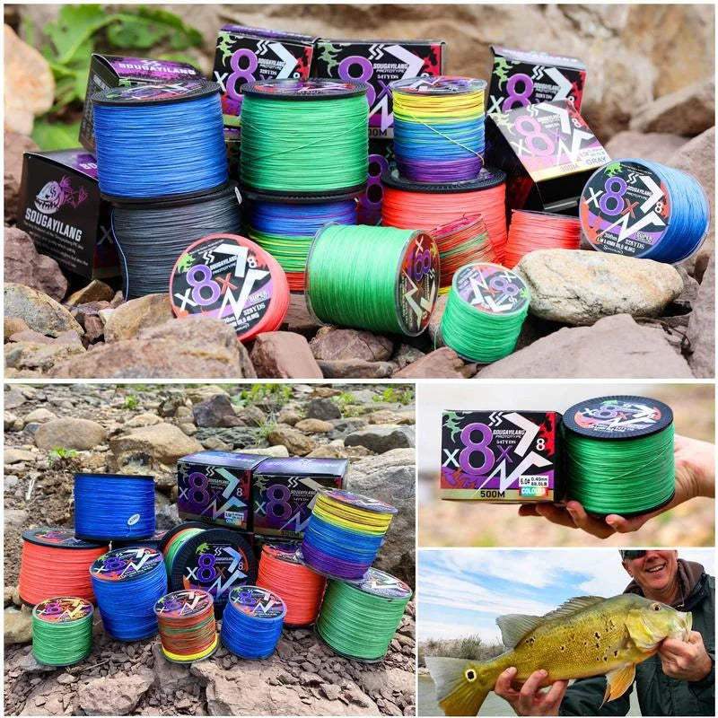 Línea trenzada de 8 hilos PE Sougayilang, disponible en 100 m, 300 m y 500 m. Alta resistencia y excelente rendimiento para pesca en agua dulce y salada.